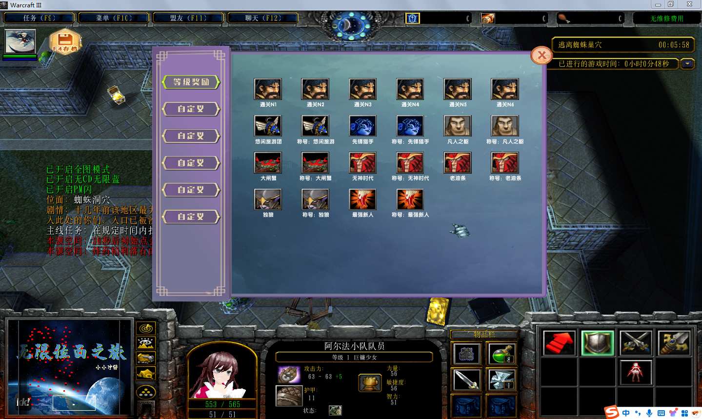 地图名字:无限位面之旅1.9.4地图下载+全商城特权+全存档+隐藏英雄+无CD+指令功能