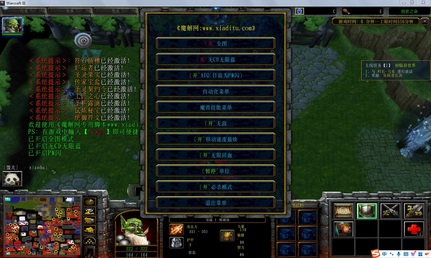 | 技能菜单【光环类技能】 | 自动化菜单【自动加钱木,提升英雄三围】 |
