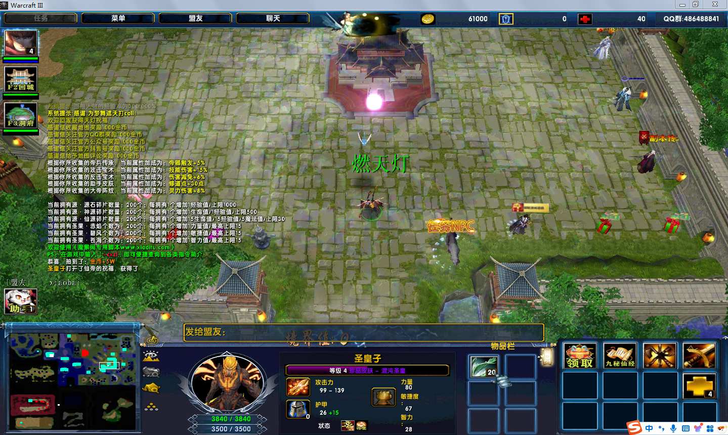 地图名字:梦舞遮天4.8.53地图下载+全商城特权+全存档+隐藏英雄+无CD+指令功能