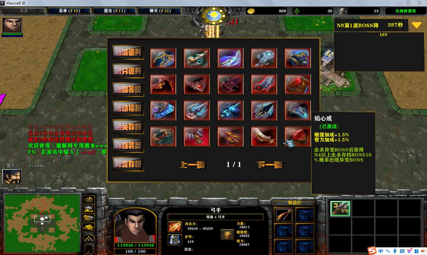 地图名字:弓箭手小进化1.0.21地图下载+全商城特权+全存档+无CD+指令功能