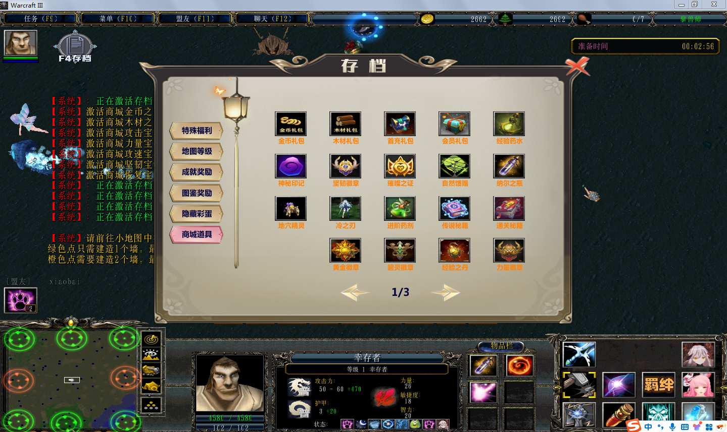 | 技能菜单【光环类技能】 | 自动化菜单【自动加钱木,提升英雄三围】 |