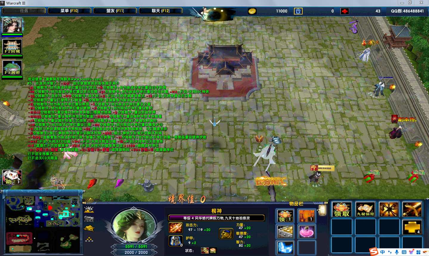地图名字:梦舞遮天4.8.54地图下载+全商城特权+全存档+隐藏英雄+无CD+指令功能