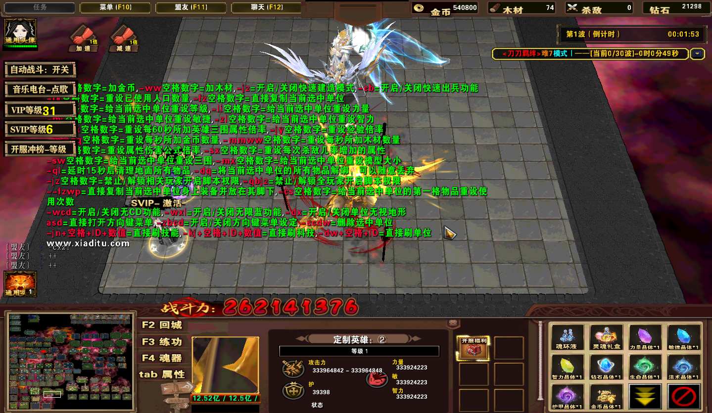| 技能菜单【光环类技能】 | 自动化菜单【自动加钱木,提升英雄三围】 |