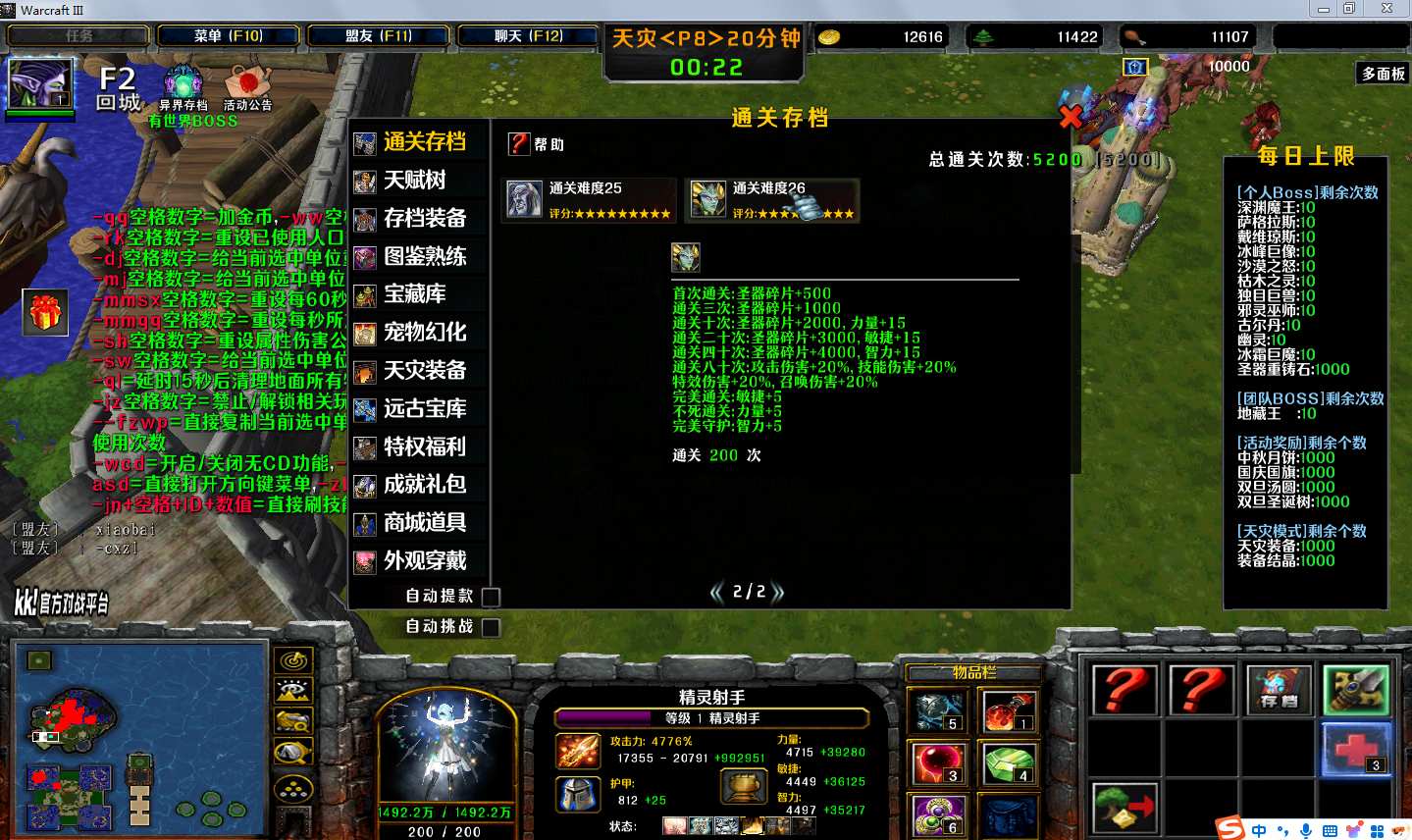 地图名字:弓手大作战1.6.53地图下载+全商城特权+全存档+隐藏英雄+无CD+指令功能