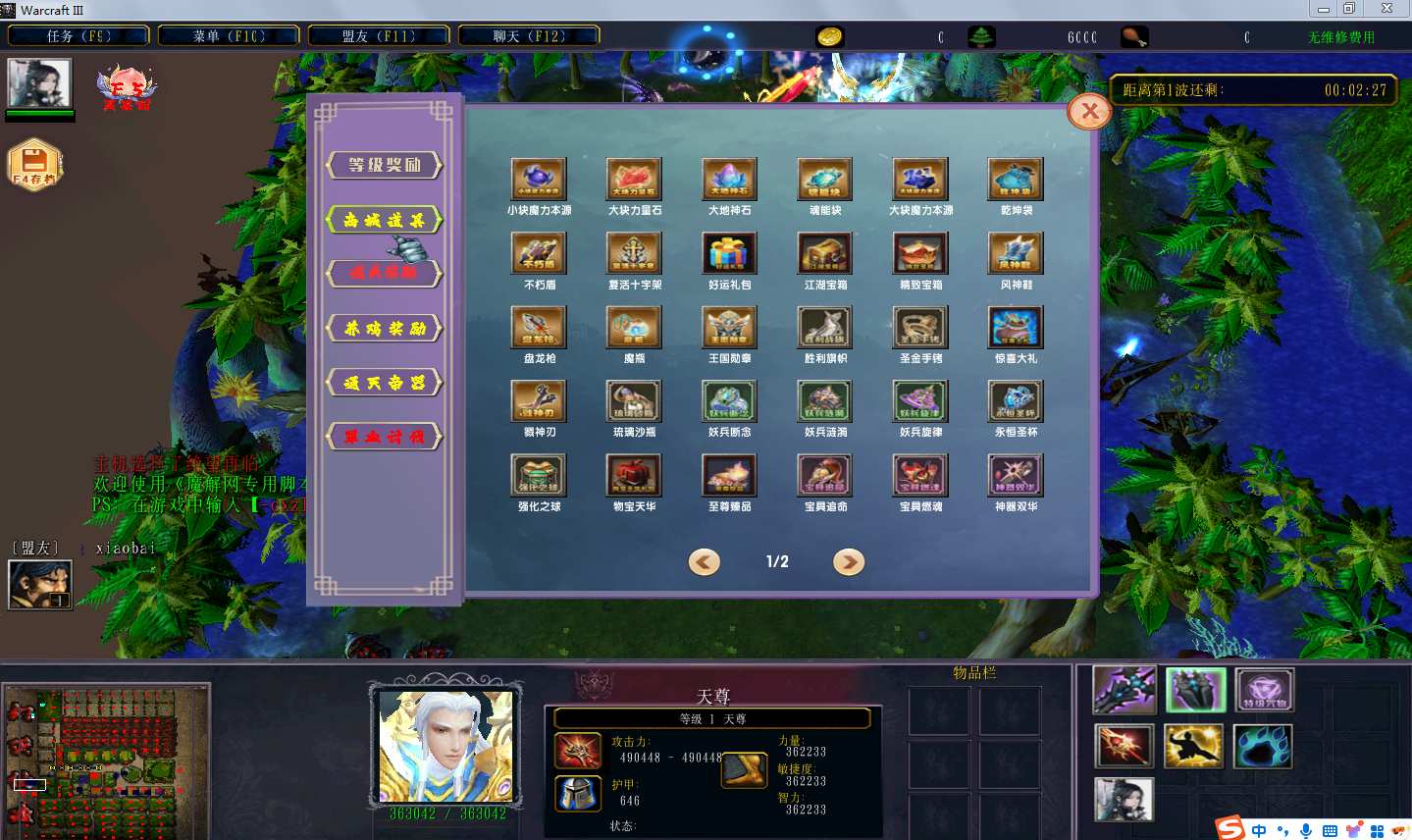 | 技能菜单【光环类技能】 | 自动化菜单【自动加钱木,提升英雄三围】 |