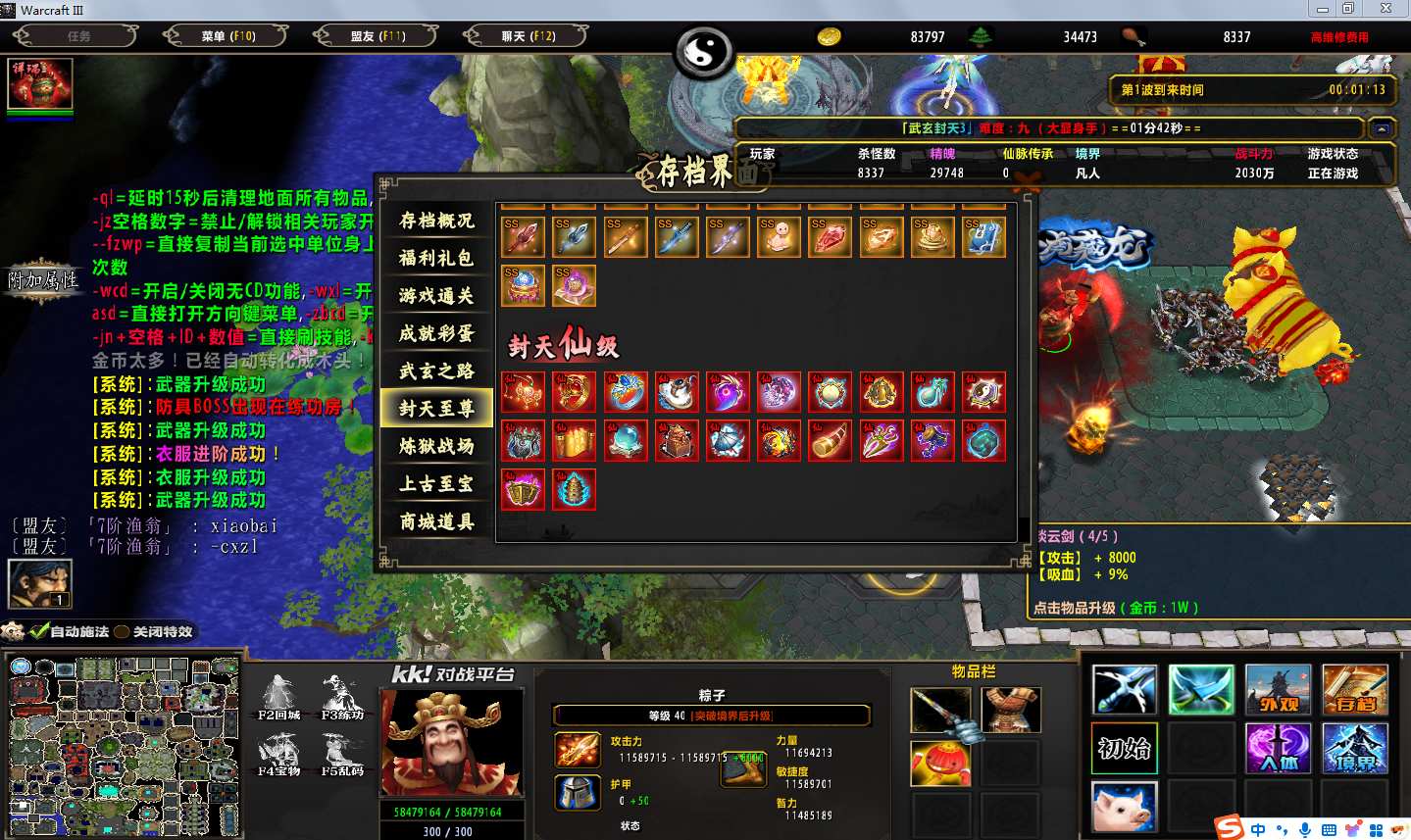 地图名字:武玄封天3 2.2.2地图下载+全商城特权+全存档+无CD+指令功能