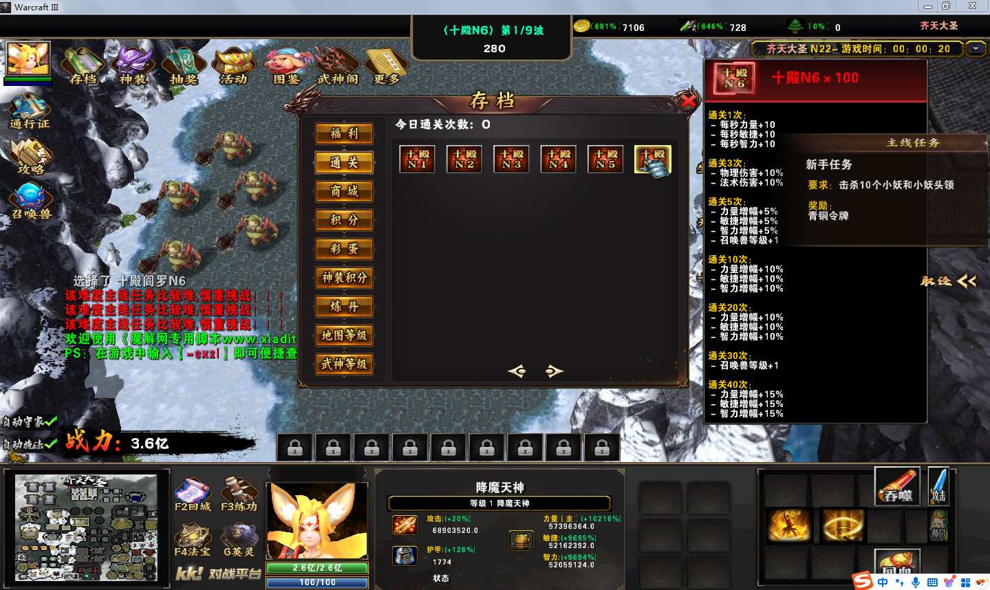 地图名字:齐天大圣1.0.147地图下载+全商城特权+全存档+隐藏英雄+无CD+指令功能