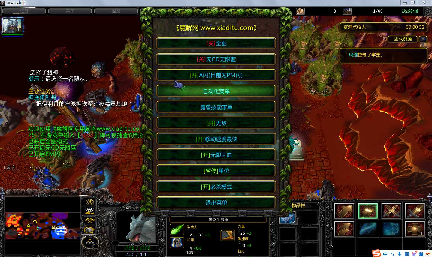 | 技能菜单【光环类技能】 | 自动化菜单【自动加钱木,提升英雄三围】 |