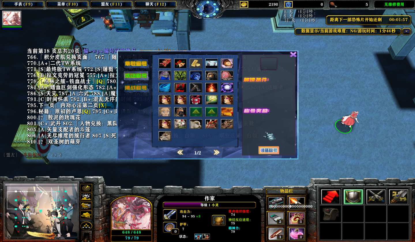 地图名字:无限恐怖之再现2.0.41地图下载+全商城特权+全存档+隐藏英雄+无CD+指令功能
