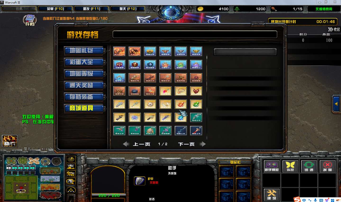 | 技能菜单【光环类技能】 | 自动化菜单【自动加钱木,提升英雄三围】 |