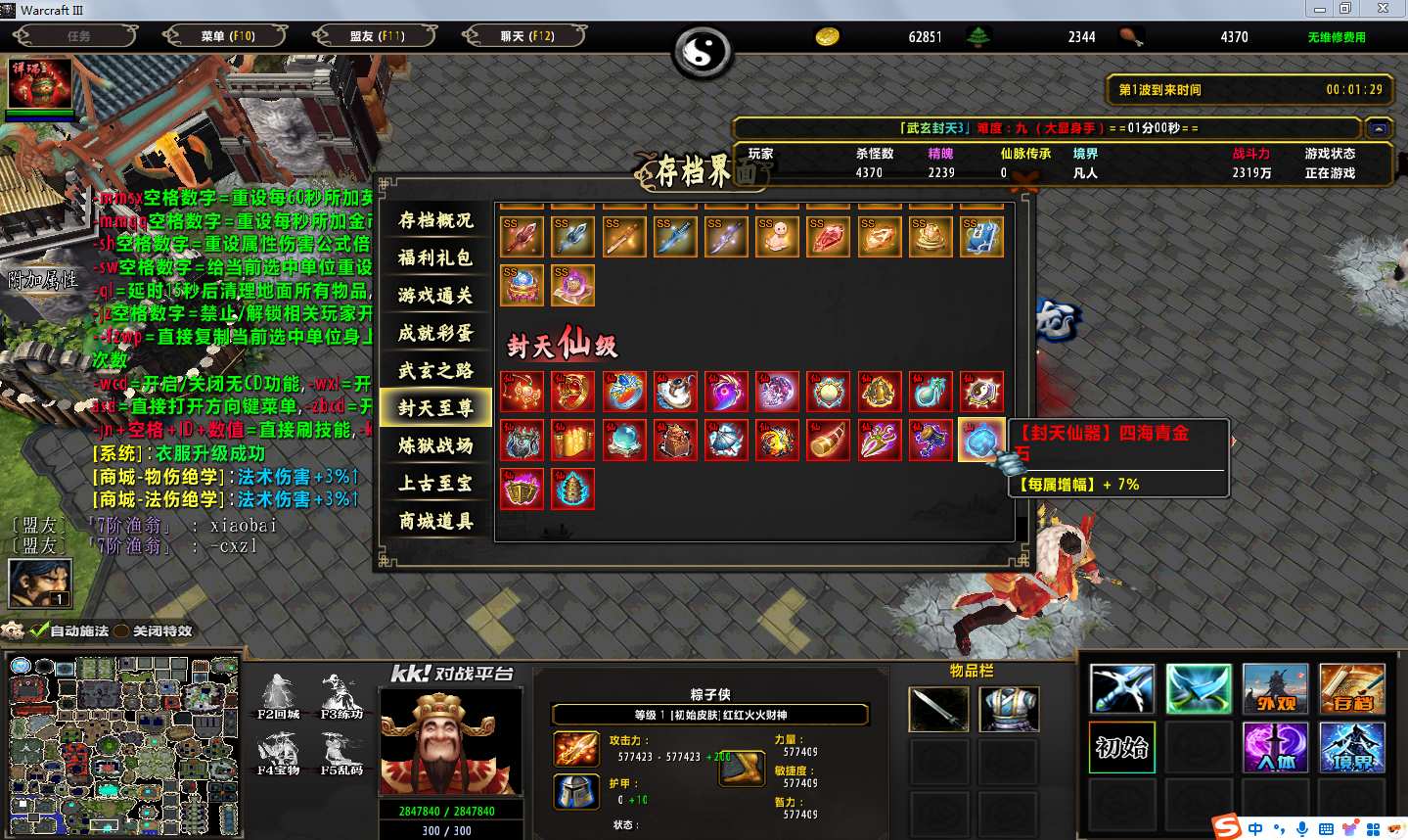 地图名字:武玄封天3 2.2.6地图下载+全商城特权+全存档+无CD+指令功能