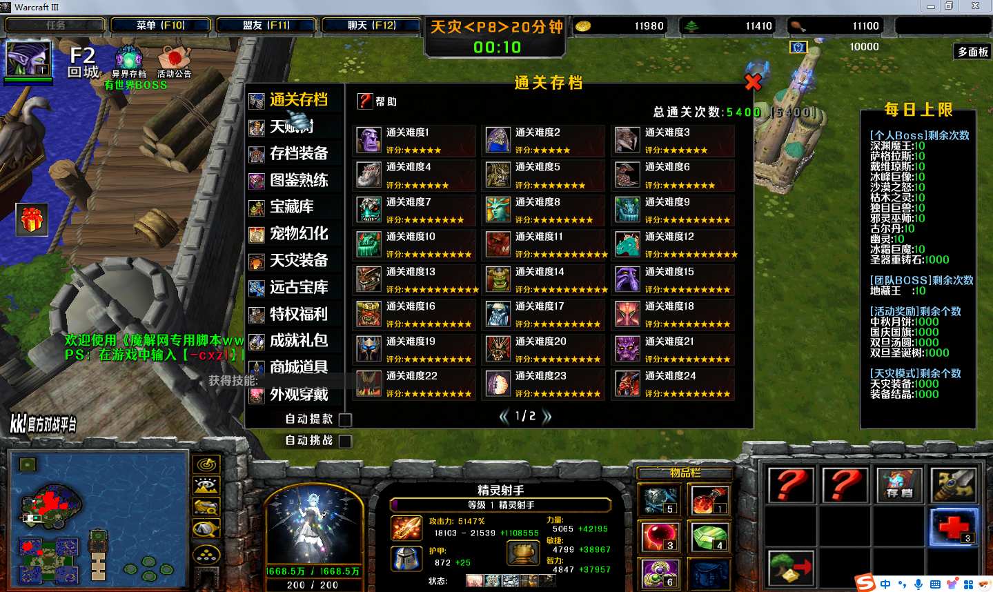弓手大作战1.7.5地图下载+全商城特权+全存档+无CD+指令功能: