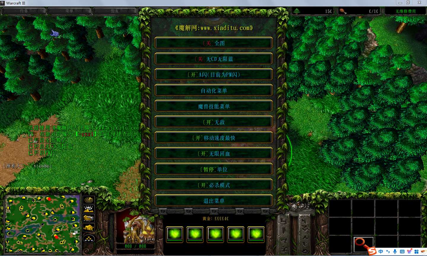 | 开启/关闭 移动速度最快 | 开启/关闭 无限回血 |