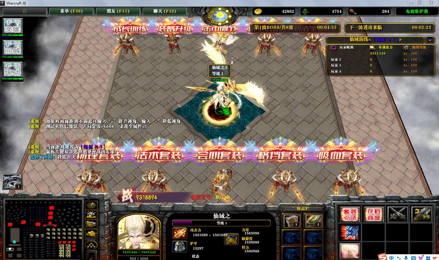 | 技能菜单【光环类技能】 | 自动化菜单【自动加钱木,提升英雄三围】 |