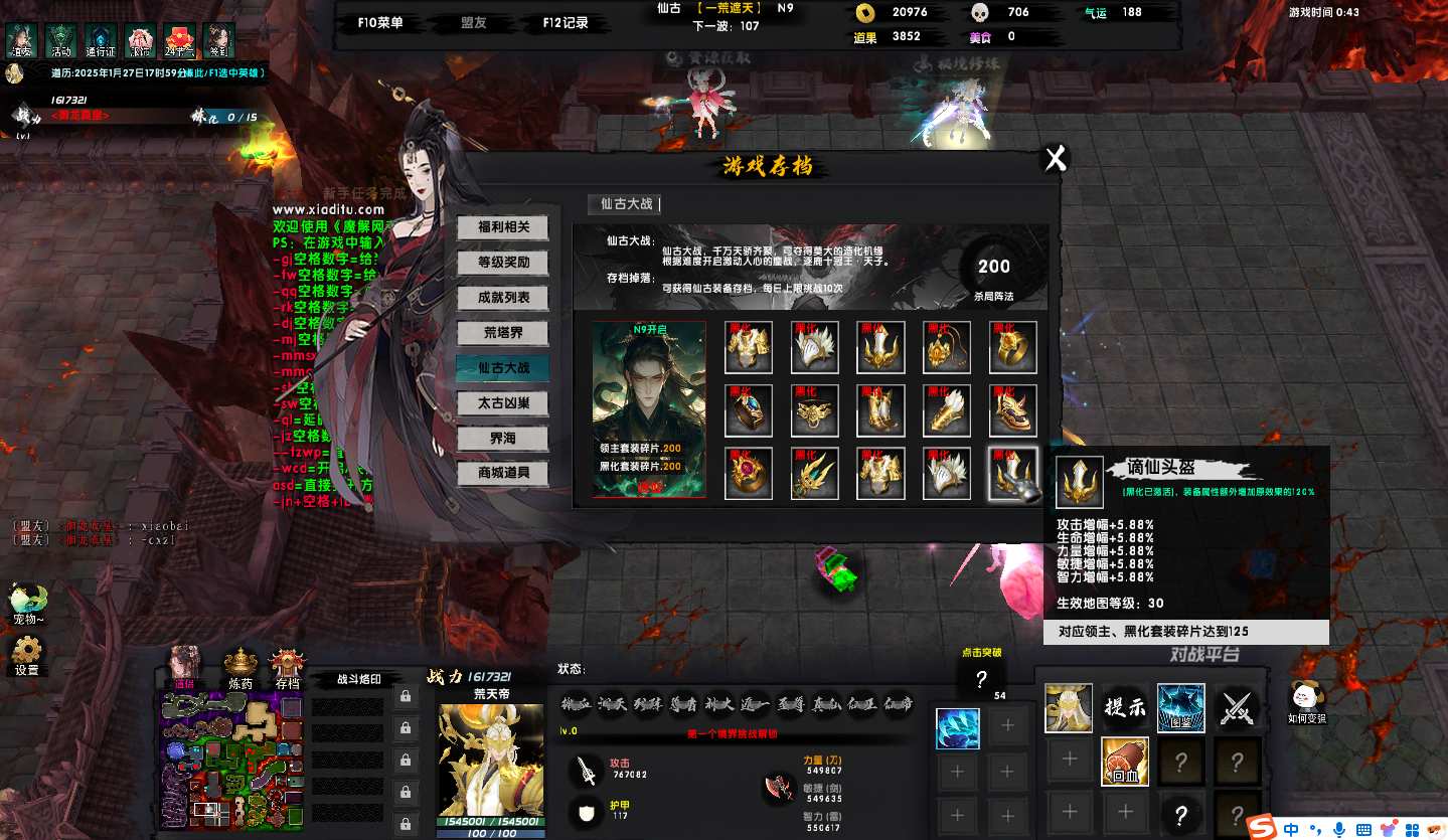一荒遮天1.1.33地图下载+全商城特权+全存档+隐藏英雄+无CD+指令功能: