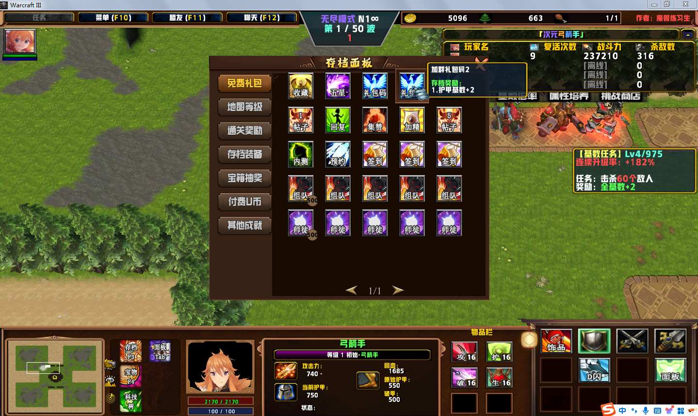 地图名字:次元弓箭手1.3.0地图下载+全商城特权+全存档+无CD+指令功能