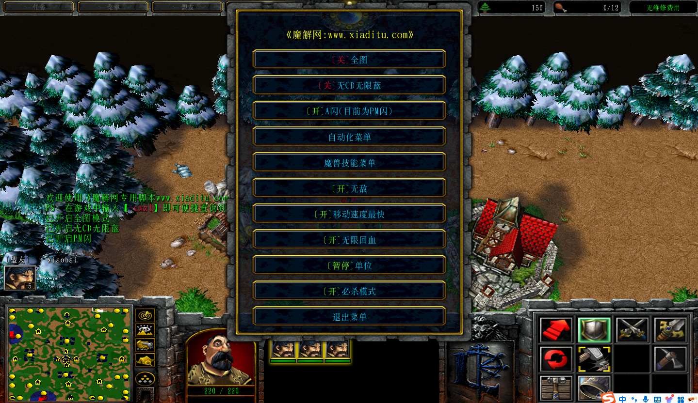 | 技能菜单【光环类技能】 | 自动化菜单【自动加钱木,提升英雄三围】 |