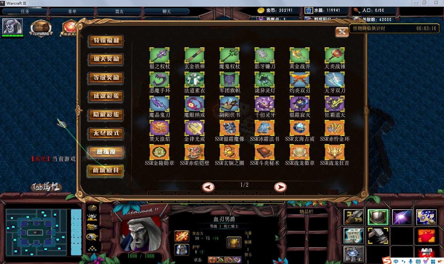 | 技能菜单【光环类技能】 | 自动化菜单【自动加钱木,提升英雄三围】 |