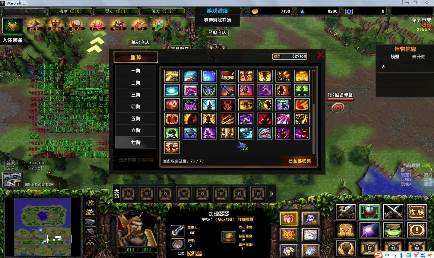 地图名字:全民防守1.0.30地图下载+全商城特权+全存档+隐藏英雄+无CD+指令功能