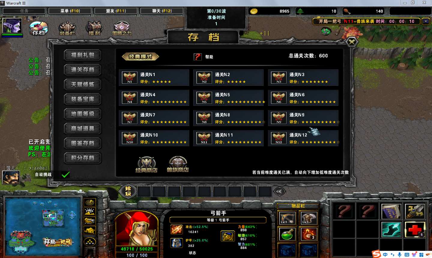 地图名字:开局一把弓1.0.71地图下载+全商城特权+全存档+无CD+指令功能