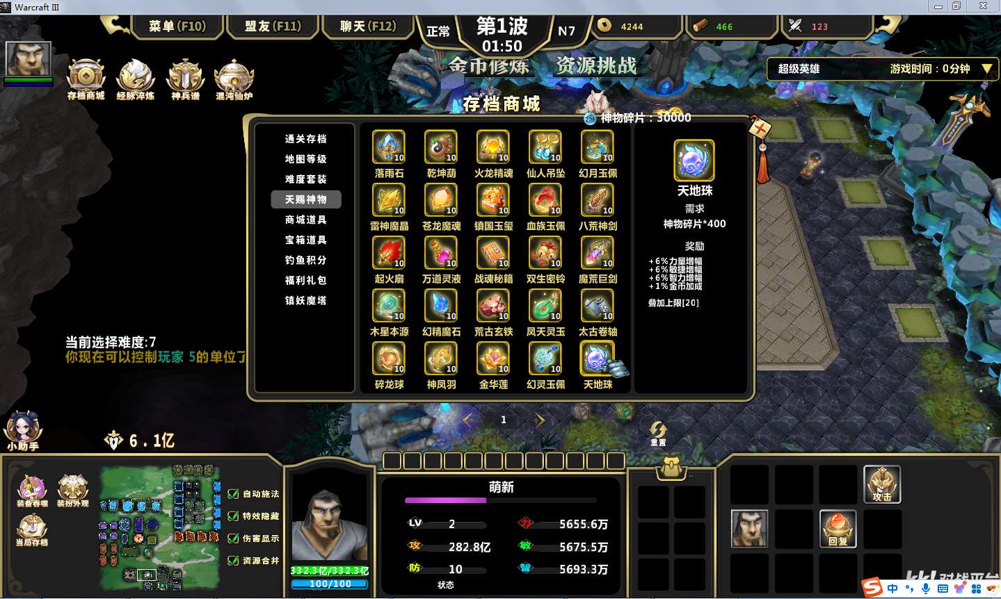 地图名字:超级英雄1.1.1地图下载+全商城特权+全存档+无CD+指令功能
