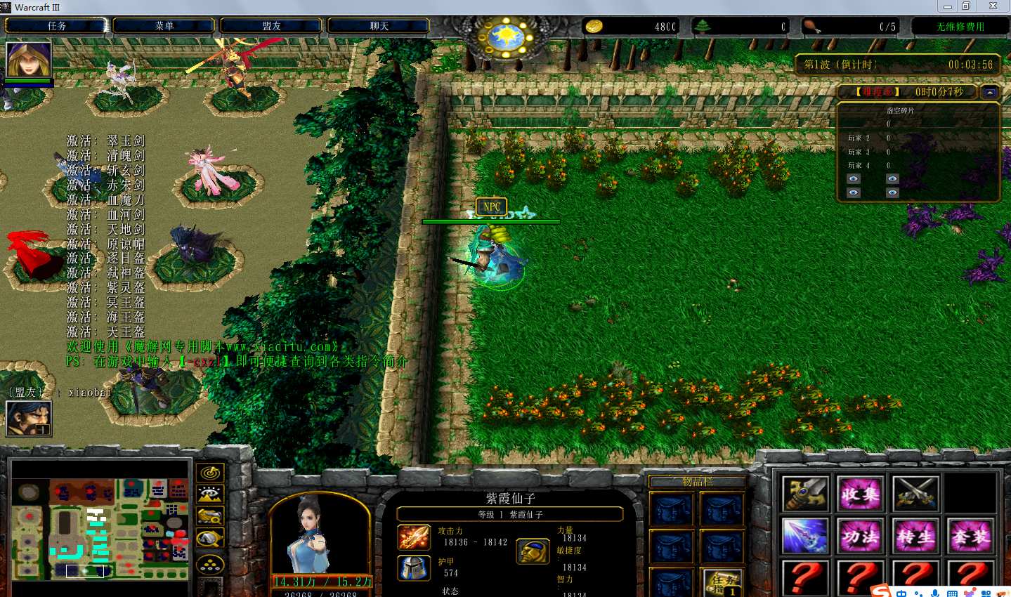 | 技能菜单【光环类技能】 | 自动化菜单【自动加钱木,提升英雄三围】 |