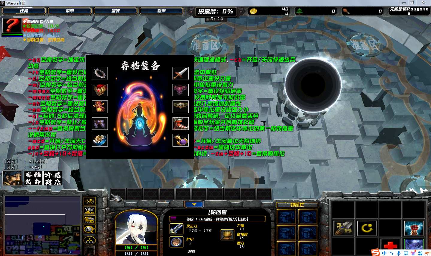 地图名字:无限恐怖RougeLike1.4.1地图下载+全商城特权+全存档+隐藏英雄+无CD+指令功能
