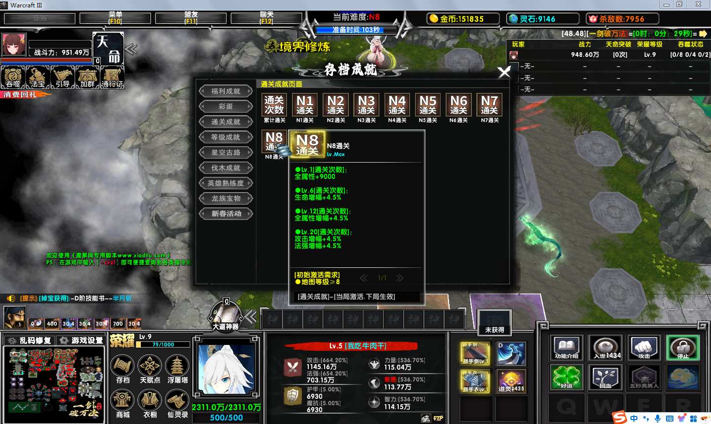 地图名字:一剑破万法2.0.19地图下载+全商城特权+全存档+隐藏英雄+无CD+指令功能