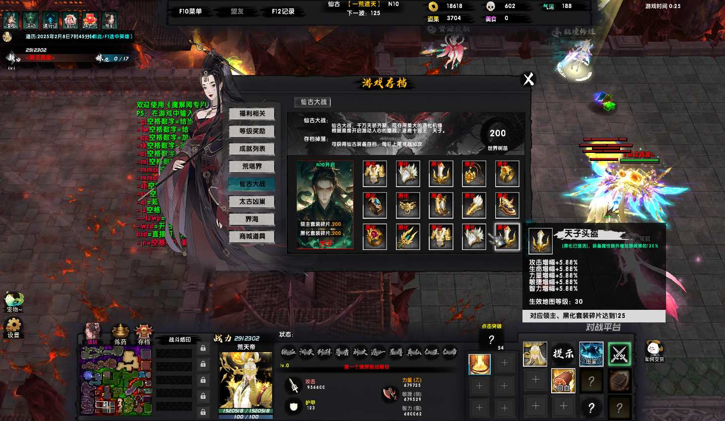 一荒遮天1.1.40地图下载+全商城特权+全存档+隐藏英雄+无CD+指令功能: