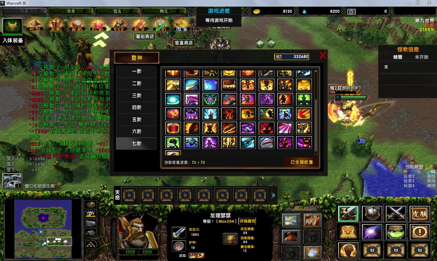 地图名字:全民防守1.0.35地图下载+全商城特权+全存档+隐藏英雄+无CD+指令功能
