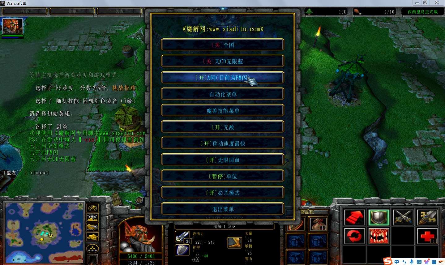 | 技能菜单【光环类技能】 | 自动化菜单【自动加钱木,提升英雄三围】 |