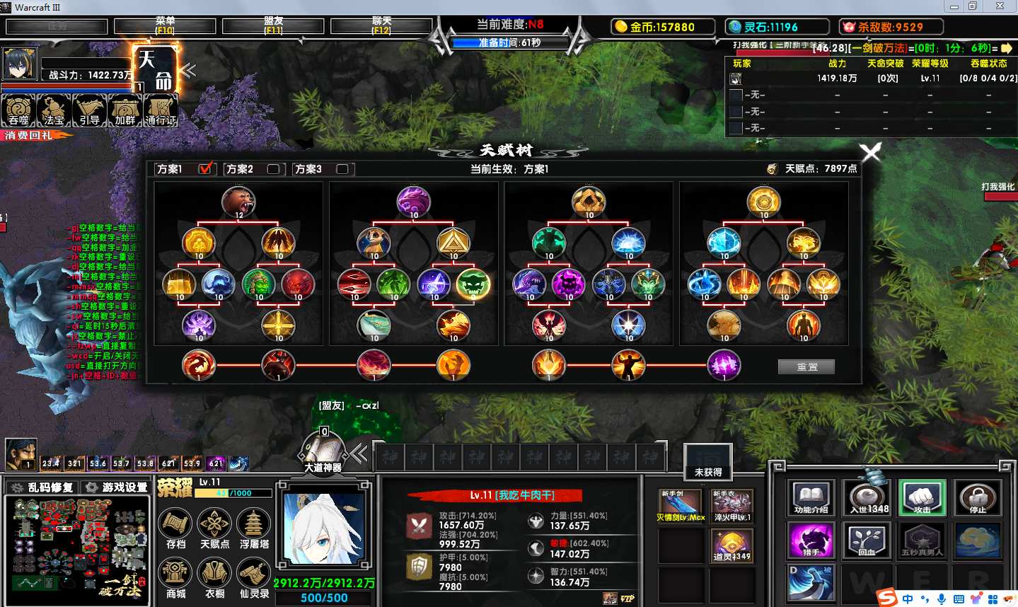 地图名字:一剑破万法2.0.22地图下载+全商城特权+全存档+隐藏英雄+无CD+指令功能