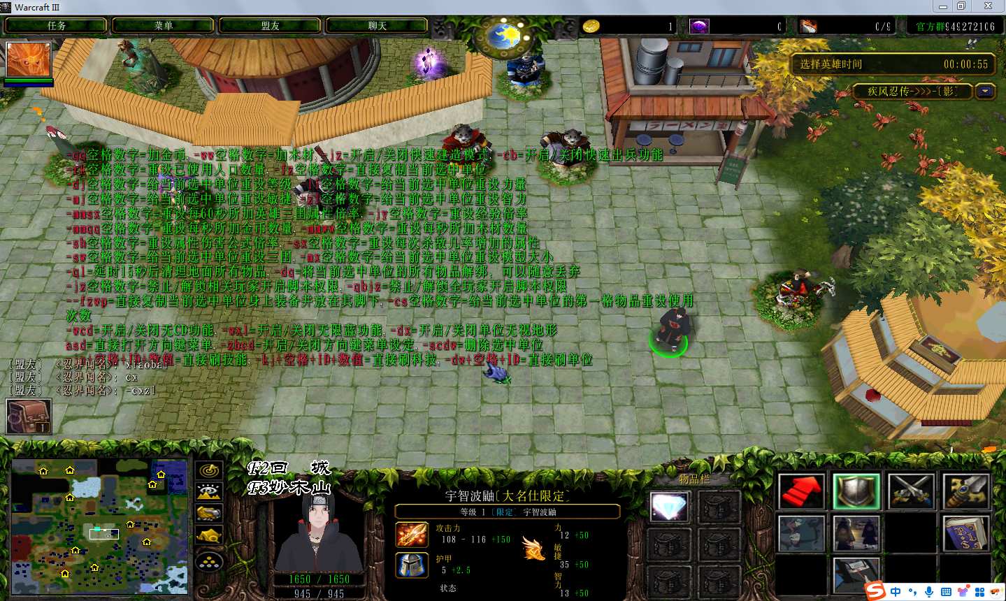 地图名字:疾风忍传4.6.9地图下载+赞助特权+隐藏英雄+无CD+指令功能