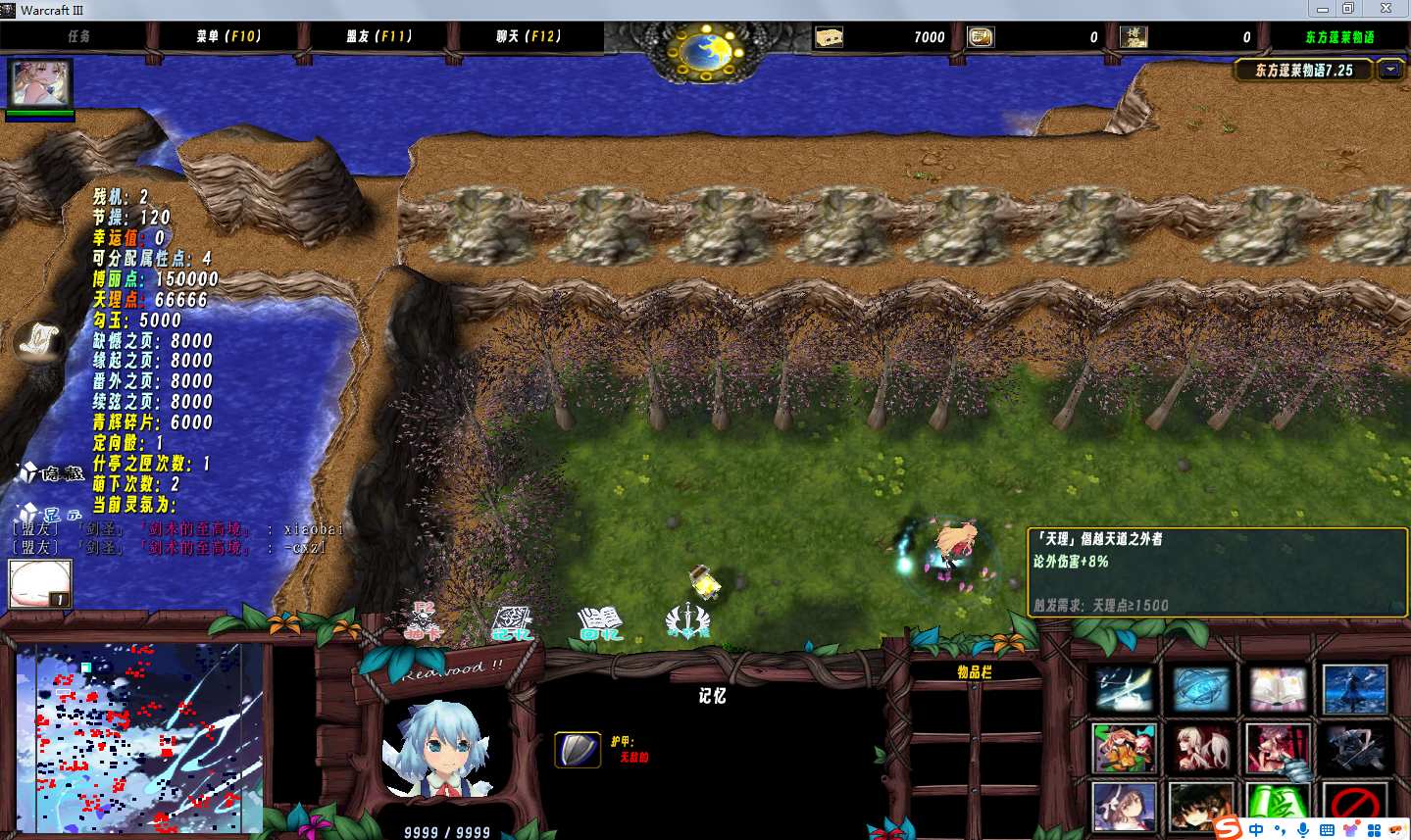 地图名字:蓬莱之旅7.2.5地图下载+全商城特权+全存档+隐藏英雄+无CD+指令功能