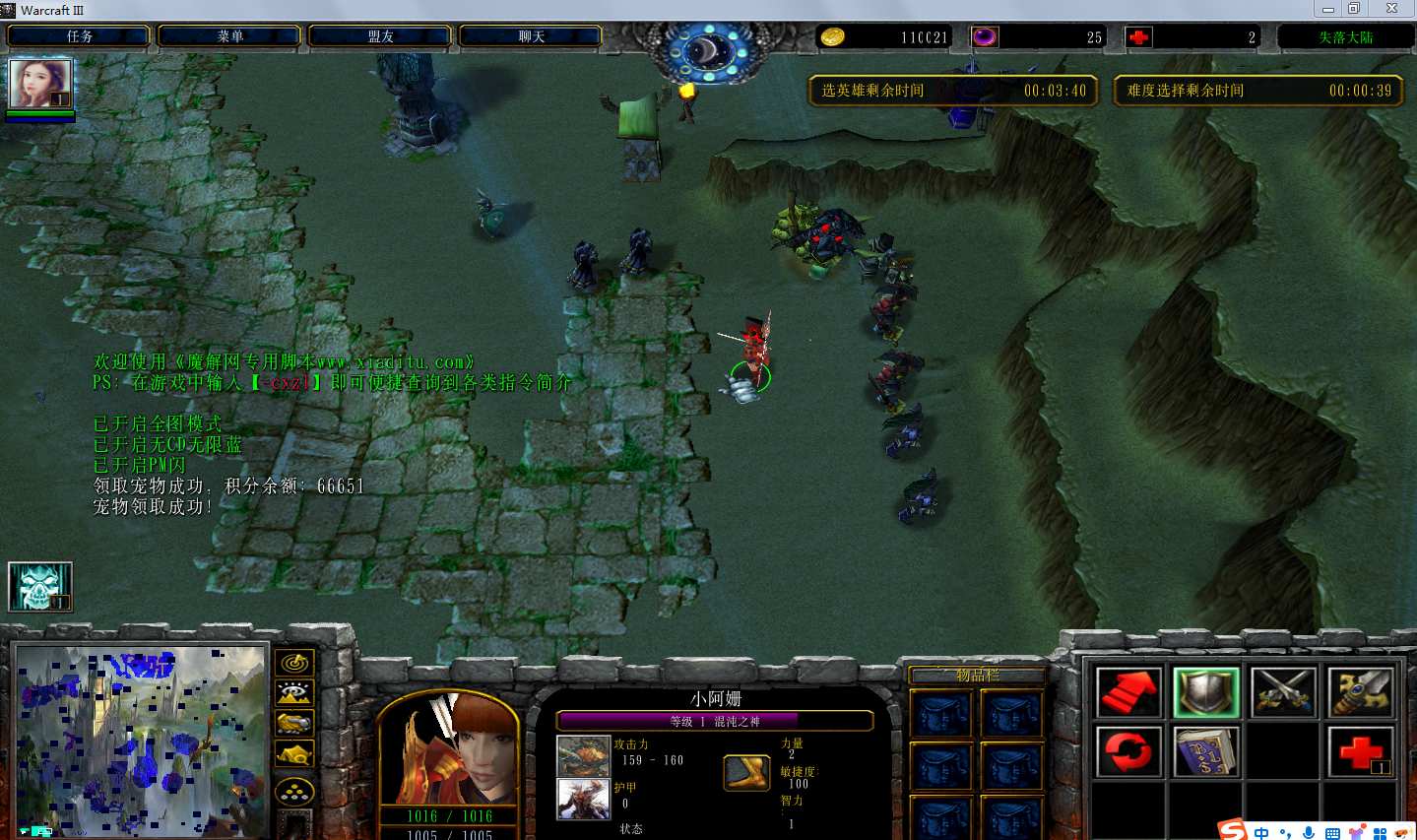地图名字:失落大陆9.1.6地图下载+全商城特权+全存档+隐藏英雄+无CD+指令功能