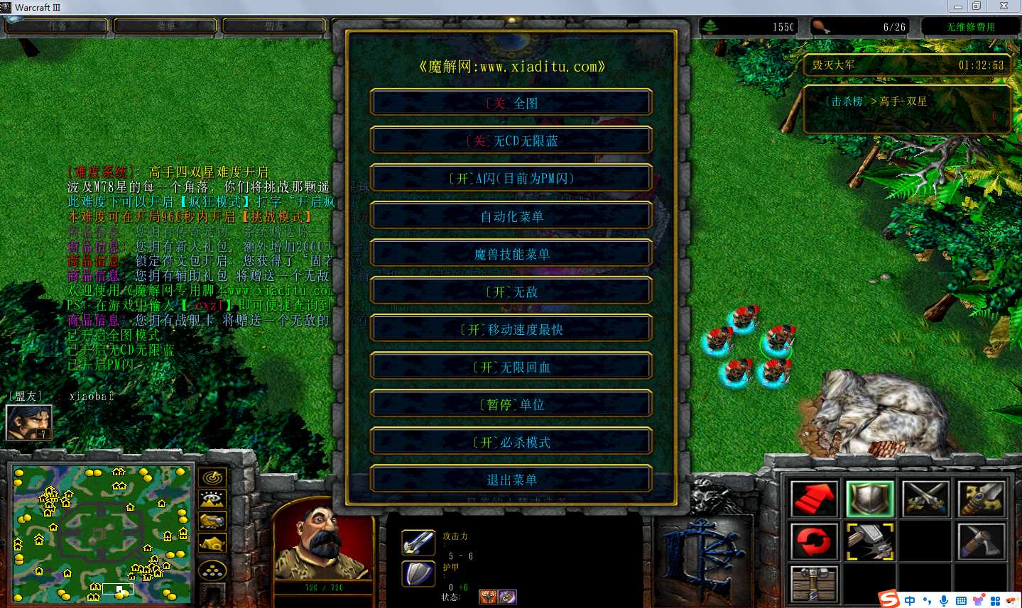 | 技能菜单【光环类技能】 | 自动化菜单【自动加钱木,提升英雄三围】 |