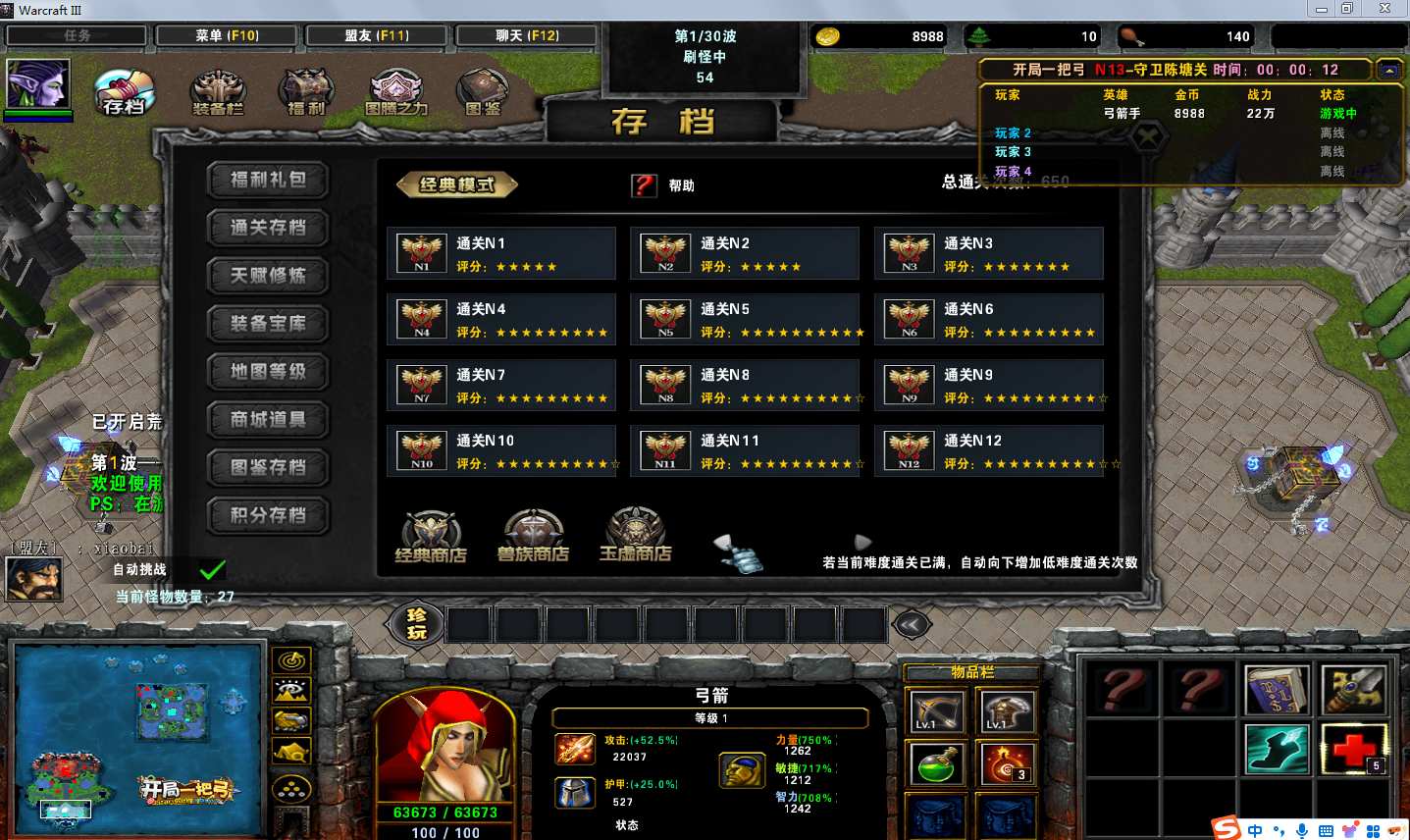 地图名字:开局一把弓1.0.81地图下载+全商城特权+全存档+无CD+指令功能