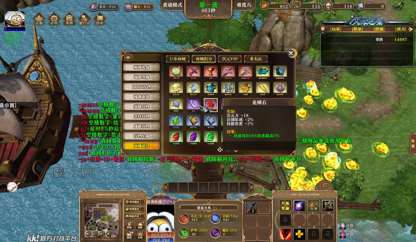 | 技能菜单【光环类技能】 | 自动化菜单【自动加钱木,提升英雄三围】 |