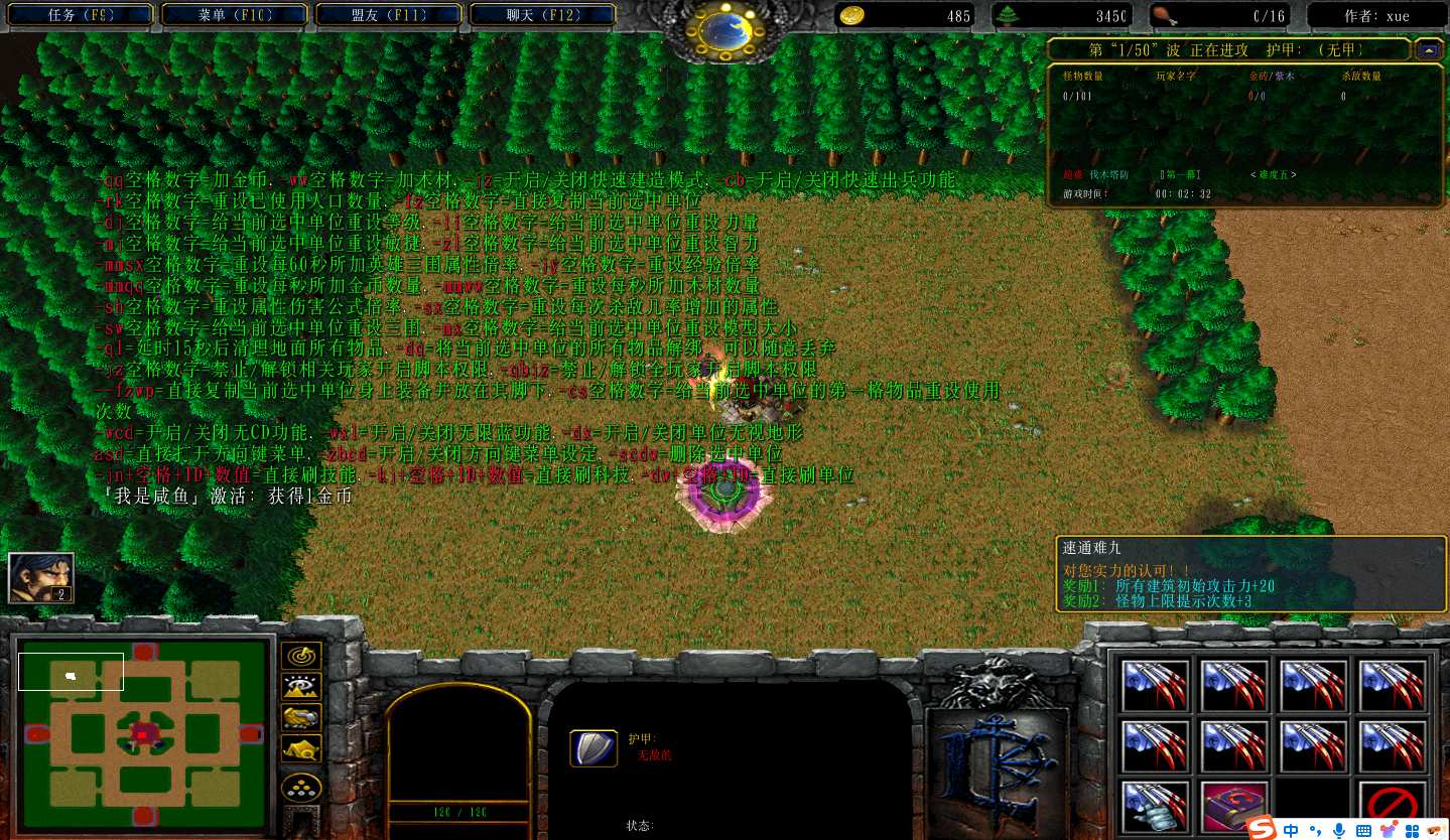 地图名字:超难伐木塔防1.0.72地图下载+全商城特权+全存档+无CD+指令功能
