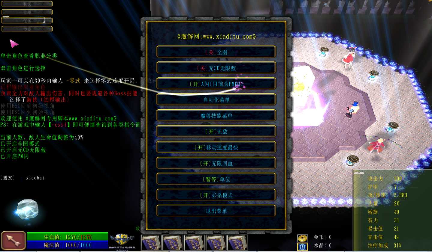 | 技能菜单【光环类技能】 | 自动化菜单【自动加钱木,提升英雄三围】 |