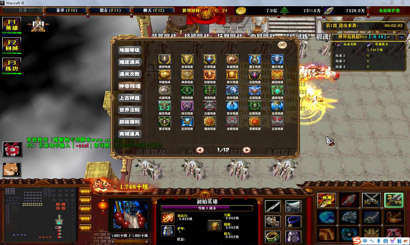 地图名字:神界危机超BtV1.7.8地图下载+全商城特权+全存档+无CD+指令功能