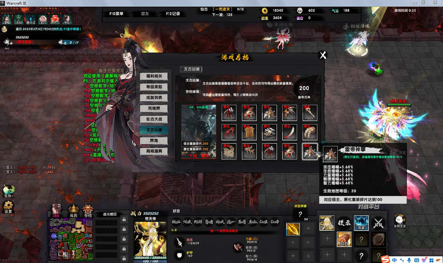 地图名字:一荒遮天1.1.44地图下载+全商城特权+全存档+隐藏英雄+无CD+指令功能