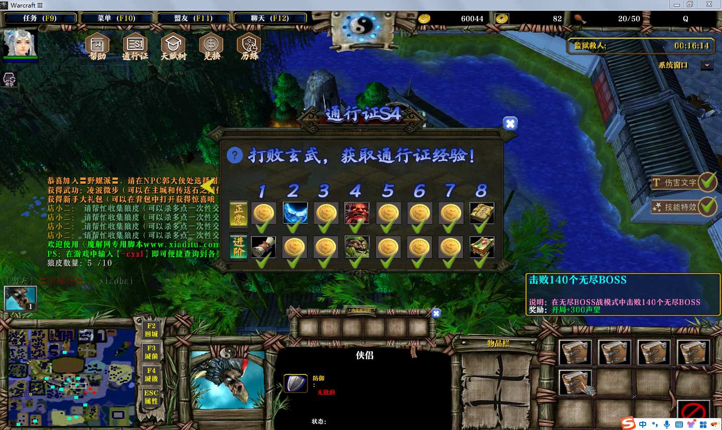 地图名字:决战江湖1.7.62地图下载+全商城特权+全存档+隐藏英雄+无CD+指令功能