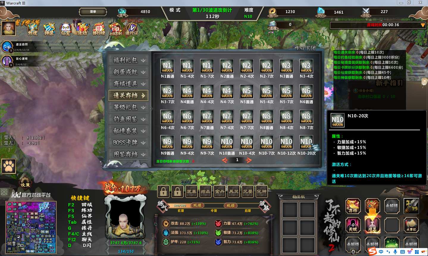 地图名字:了不起的修仙2 1.3.2地图下载+全商城特权+全存档+无CD+指令功能