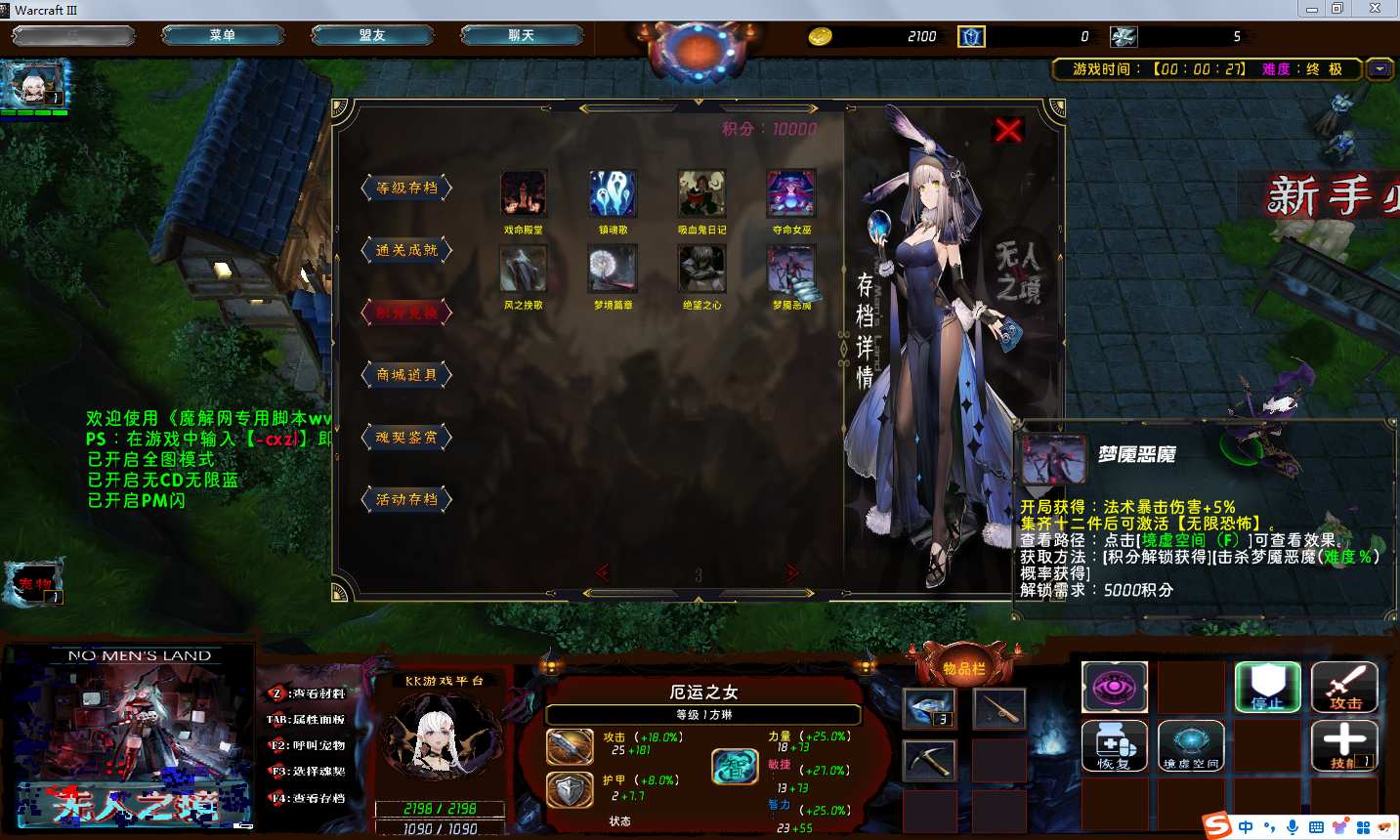 地图名字:无人之境2 2.0.2地图下载+全商城特权+全存档+隐藏英雄+无CD+指令功能