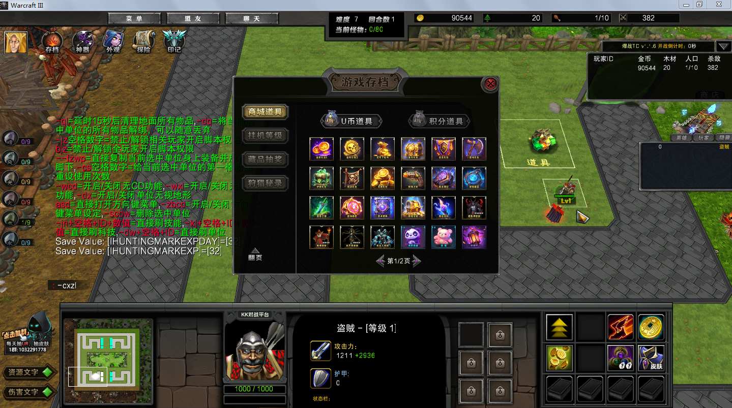 | 技能菜单【光环类技能】 | 自动化菜单【自动加钱木,提升英雄三围】 |