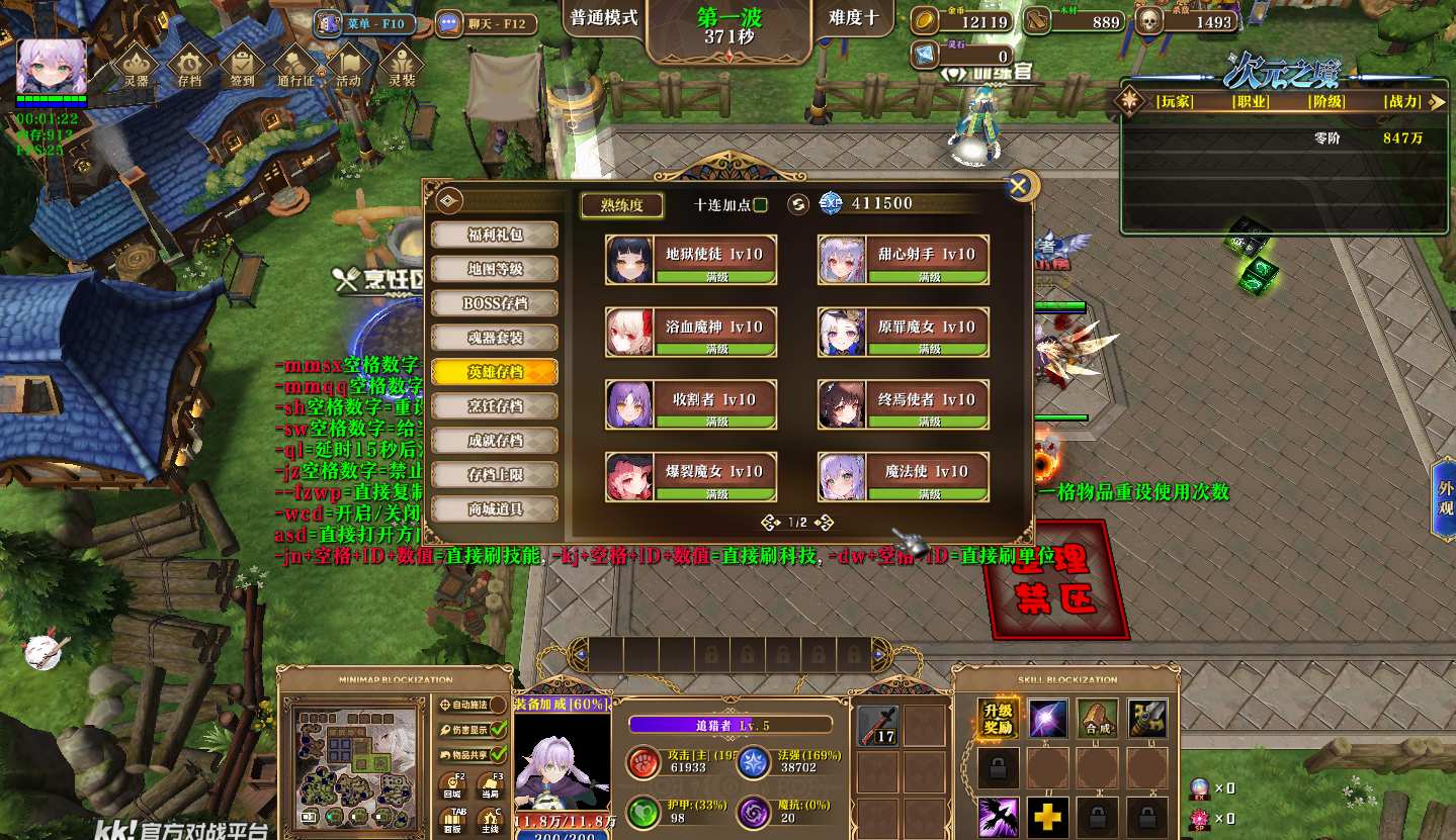 次元之境1.3.8地图下载+全商城特权+全存档+隐藏英雄+无CD+指令功能:
