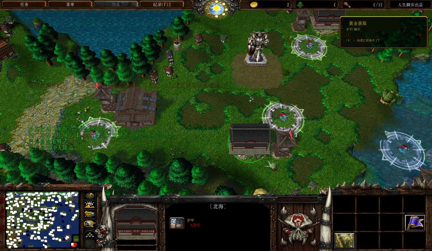 | 技能菜单【光环类技能】 | 自动化菜单【自动加钱木,提升英雄三围】 |