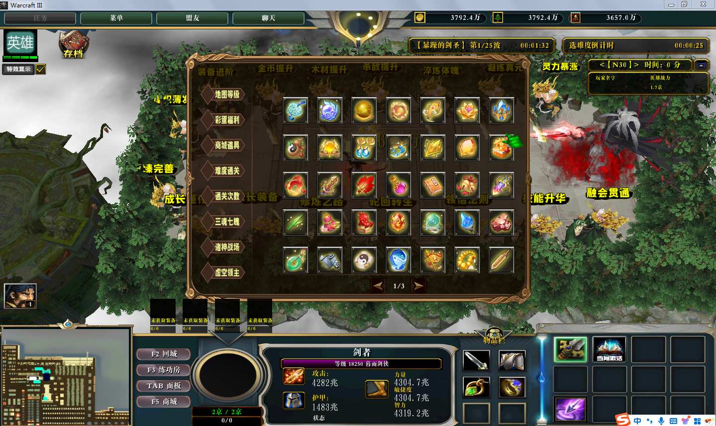 | 技能菜单【光环类技能】 | 自动化菜单【自动加钱木,提升英雄三围】 |