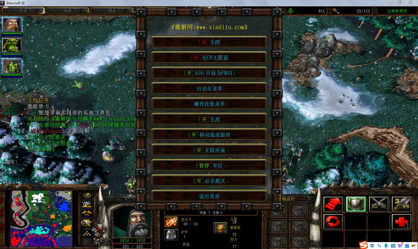 | 技能菜单【光环类技能】 | 自动化菜单【自动加钱木,提升英雄三围】 |
